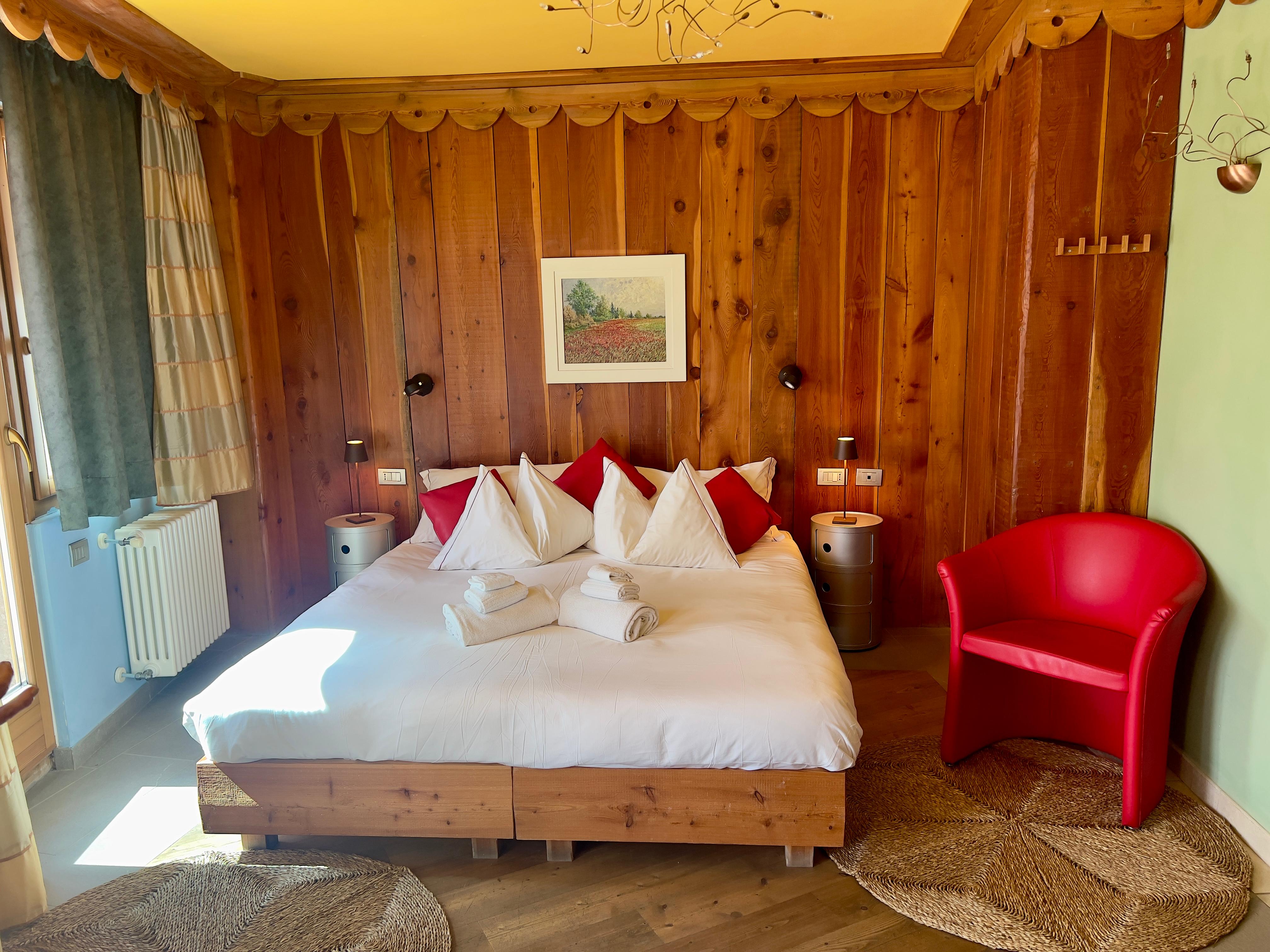 Le nostre camere Superior hanno, nella loro semplicità, tutti i comfort che una camera d’hotel può dare, godono di un ampio terrazzo vista comprensorio; ampie vetrate che fanno entrare tutta la luce e il calore che il colle trasmette. Arredate con materiali naturali della regione, con pavimento in legno, abbinato a mobili antichi uniti al design moderno.